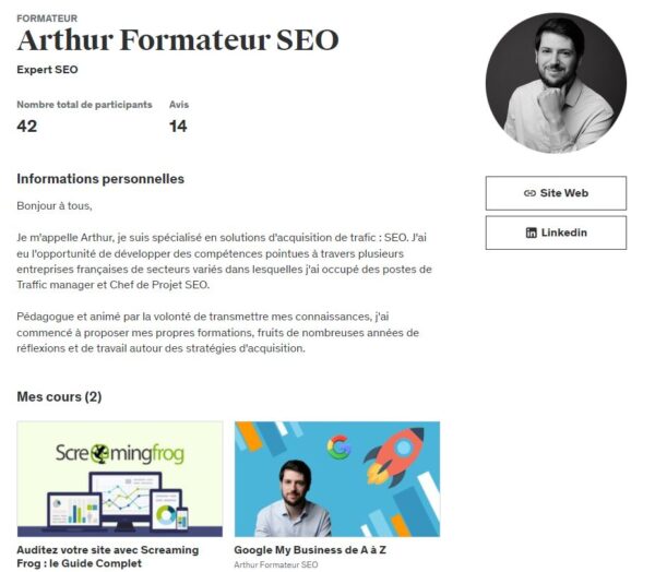 - Udemy, très complet en terme de cours marketing et de cours SEO.