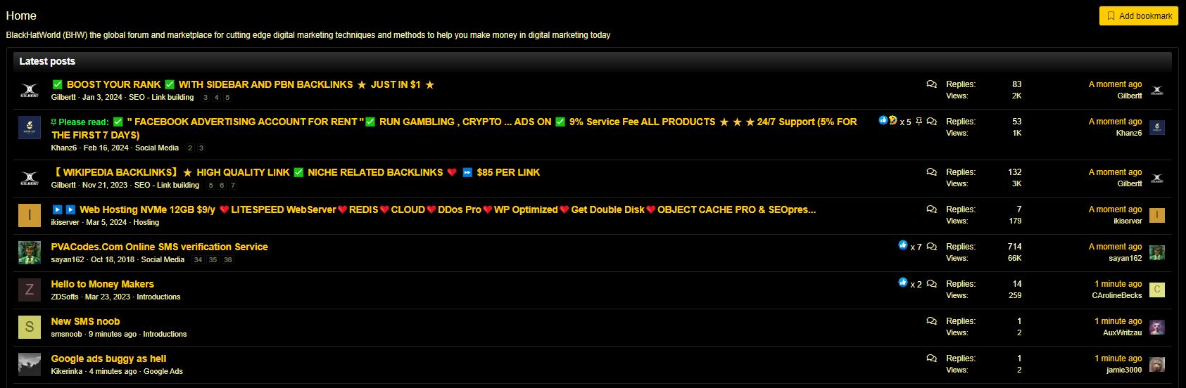 Nom évocateur, le forum Blackhatworld.com est dédié au SEO Black Hat. C’est-à-dire le SEO qui a pour objectif d’améliorer votre trafic au détriment des guidelines de Google.