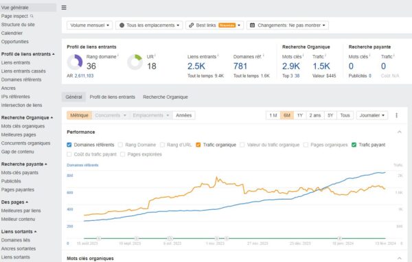 L’essentiel des informations intéressantes se situent dans l’onglet « site explorer ». Dans cette partie vous retrouverez l’ensemble des analyses SEO qui concernent votre site web.