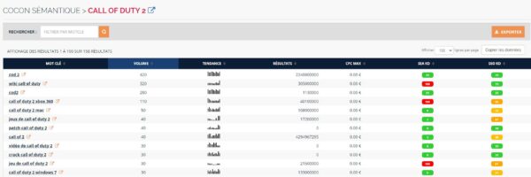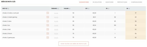 Dans la partie du dessous vous accédez ensuite à une liste de suggestion de mots clés complémentaires.