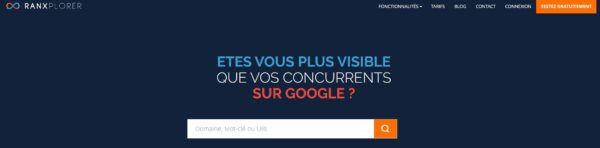 Ranxplorer est une suite SEO qui comprend l’ensemble des outils que l’on retrouve habituellement. Avec un outil de recherche de mots clés organique et payant, l’audit SEO, ainsi que l’analyse du profil de liens. Vous pourrez vous créer un compte gratuitement pour bénéficier de toutes les fonctionnalités durant 7 jours.