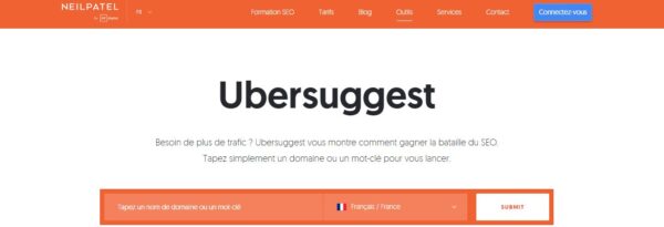 Ubersuggest est un outil de recherche de mots clés que j’affectionne particulièrement. Il a été créé par Neil Patel qui est un référenceur. L’outil existe depuis un moment maintenant et il a bénéficié d’une refonte graphique qui le modernise. Contrairement à d’autres outils de recherche de mots clés, Ubersuggest est bien plus facile à appréhender. Il y a moins de fonctionnalités et l’outil va plus à l’essentiel.