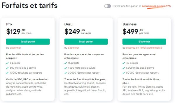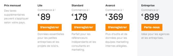 Vous retrouverez l’ensemble des tarifs ici : https://fr.semrush.com/pricing/